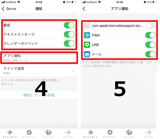 Fitbitデバイスの【システム通知を共有】をオンにする設定方法